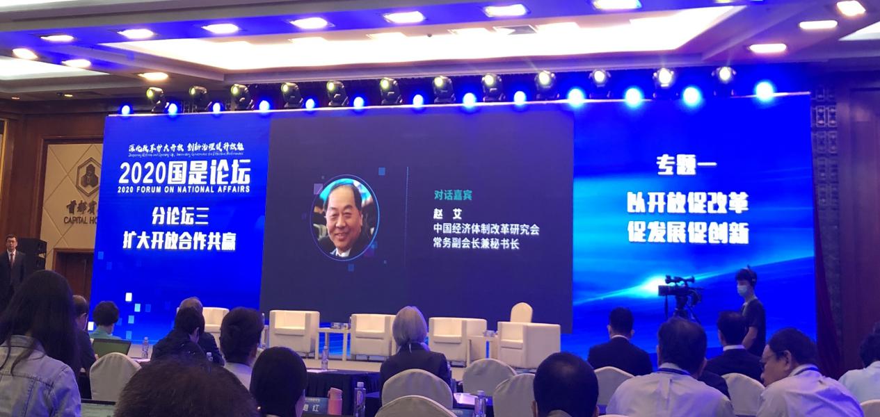 由國務(wù)院參事室、國家衛(wèi)生健康委員會、中國國際貿(mào)易促進(jìn)委員會、中國經(jīng)濟(jì)體制改革研究會聯(lián)合主辦,新華網(wǎng)承辦的 “2020國是論壇” 9月24日在北京開幕。本屆論壇以“深化改革擴(kuò)大開放、創(chuàng)新治理提升效能”為主題,邀請數(shù)十位重磅嘉賓與會交流研討。以下為中國經(jīng)濟(jì)體制改革研究會常務(wù)副會長兼秘書長趙艾同志在 “2020國是論壇” 上的演講。