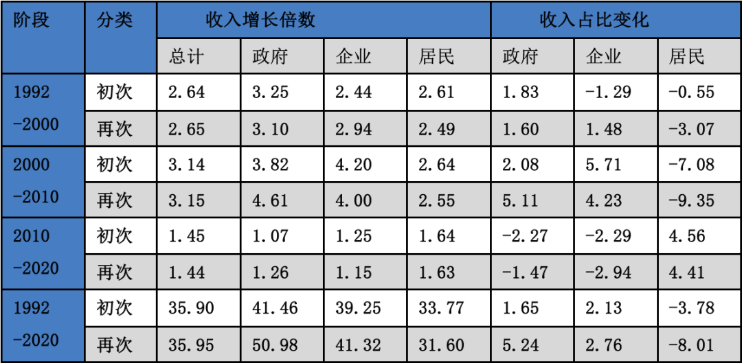 表1:政府、企業(yè)、居民三大部門收入占比(1992-2020)