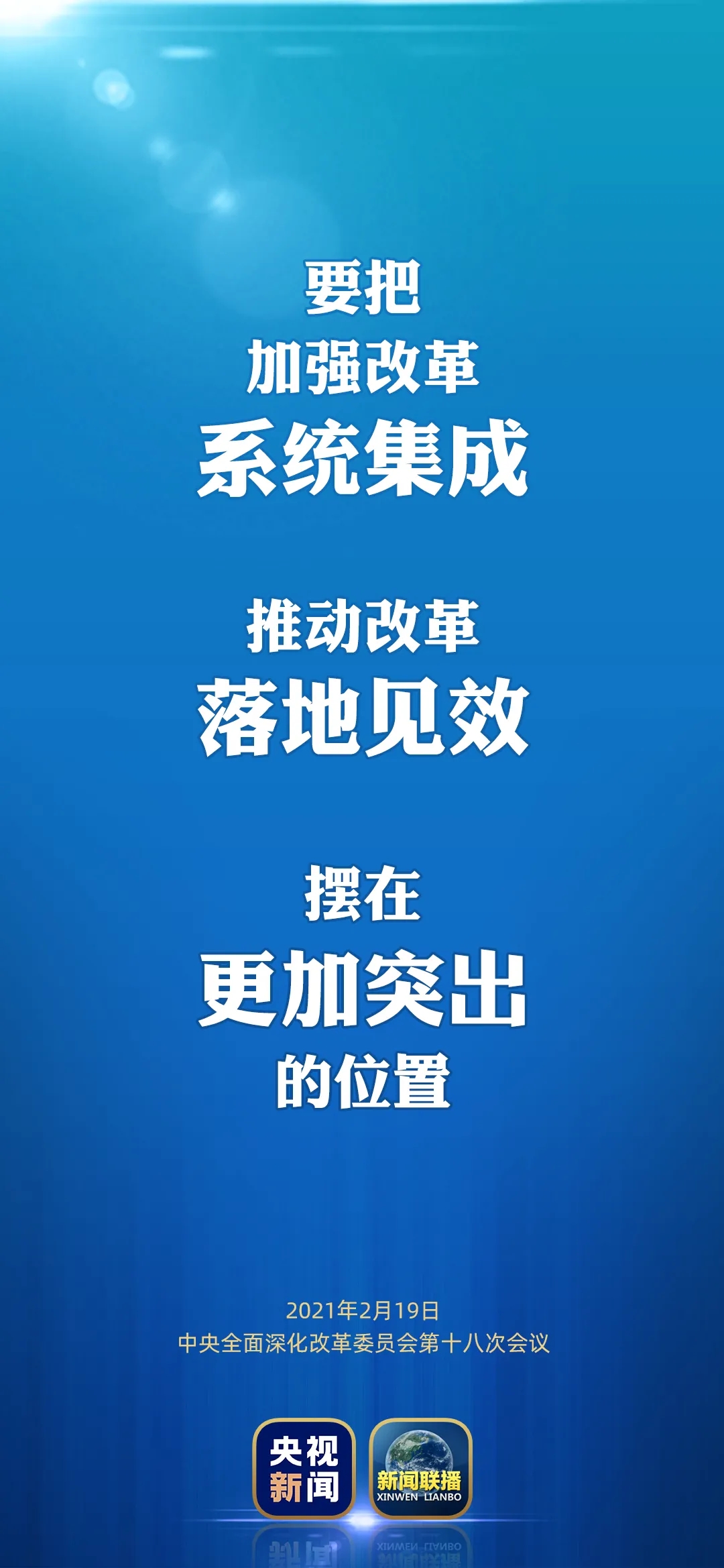 2月19日,中共中央總書記、國(guó)家主席、中央軍委主席、中央全面深化改革委員會(huì)主任習(xí)近平主持召開中央全面深化改革委員會(huì)第十八次會(huì)議并發(fā)表重要講話。他強(qiáng)調(diào),要完整、準(zhǔn)確、全面貫徹新發(fā)展理念,更加精準(zhǔn)地出臺(tái)改革方案,推動(dòng)改革向更深層次挺進(jìn)。來(lái)看梳理→