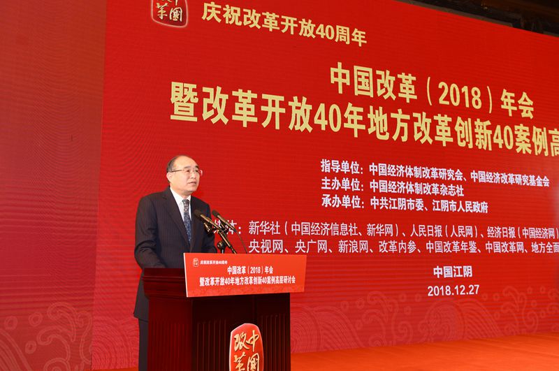 2018年12月27日,由中國經(jīng)濟體制改革研究會、中國經(jīng)濟改革研究基金會指導,中國經(jīng)濟體制改革雜志社主辦,中共江陰市委、江陰市人民政府承辦的“慶祝改革開放40周年——中國改革(2018)年會暨改革開放40年地方改革創(chuàng)新40案例高層研討會”在江蘇省江陰市召開。