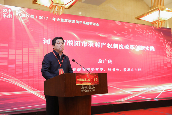 河南省濮陽市委常委、秘書長、改革辦主任余廣慶介紹了濮陽特色鮮明的農(nóng)村集體產(chǎn)權(quán)制度改革經(jīng)驗(yàn):在推進(jìn)農(nóng)村集體產(chǎn)權(quán)制度改革中,濮陽市農(nóng)村黨支部成為基層黨建工作的一個(gè)重大創(chuàng)新,市委領(lǐng)導(dǎo)親自上陣親自督辦、跟蹤進(jìn)度;建成了比較完善的市縣鄉(xiāng)三級(jí)產(chǎn)權(quán)交易平臺(tái),充分釋放農(nóng)村要素活力;依托市縣兩級(jí)黨校邀請專家解讀改革政策改革事件推動(dòng)農(nóng)村改革。