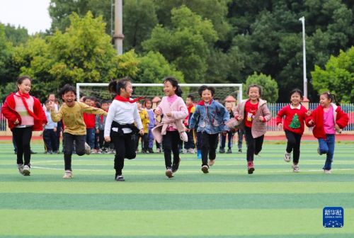 11月4日,在湖南省永州市新田縣雙碧小學(xué),孩子們在運(yùn)動(dòng)場上做游戲。今年秋季學(xué)期開學(xué)以來,各地積極落實(shí)“雙減”政策,利用課后服務(wù)時(shí)間開展內(nèi)容豐富、形式多樣的課外活動(dòng),促進(jìn)學(xué)生全面發(fā)展。新華社發(fā)(劉貴雄攝)