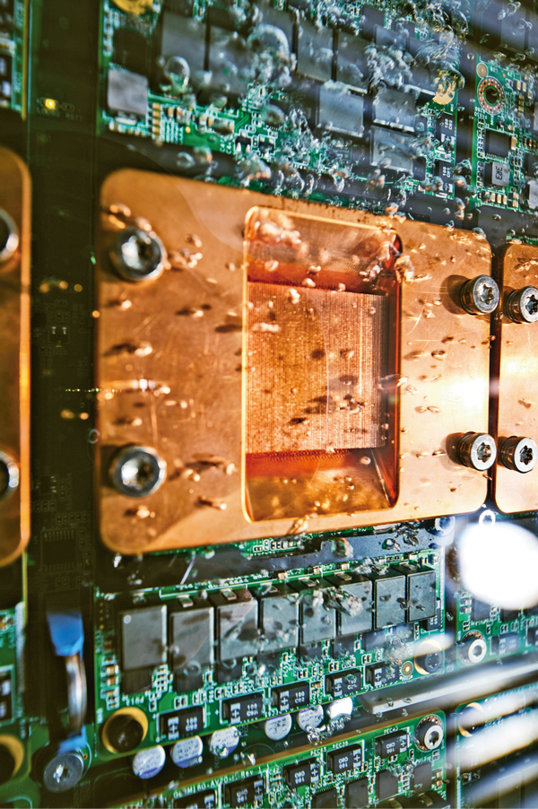 數(shù)字經(jīng)濟(jì)對經(jīng)濟(jì)社會的引領(lǐng)帶動作用日益凸顯。圖為2021年11月拍攝的液冷計(jì)算節(jié)點(diǎn),能夠?qū)?shù)據(jù)中心能效比PUE降至1.1以下,比傳統(tǒng)風(fēng)冷技術(shù)節(jié)電20%。 中國科學(xué)院供圖