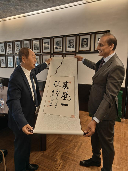 8月15日,我會(huì)常務(wù)副會(huì)長(zhǎng)兼秘書長(zhǎng)趙艾應(yīng)邀赴巴基斯坦駐華大使館,就共建“一帶一路”和中巴經(jīng)濟(jì)走廊建設(shè)的有關(guān)問(wèn)題與巴基斯坦駐華大使館經(jīng)濟(jì)公使阿斯拉姆·喬杜里進(jìn)行會(huì)談。