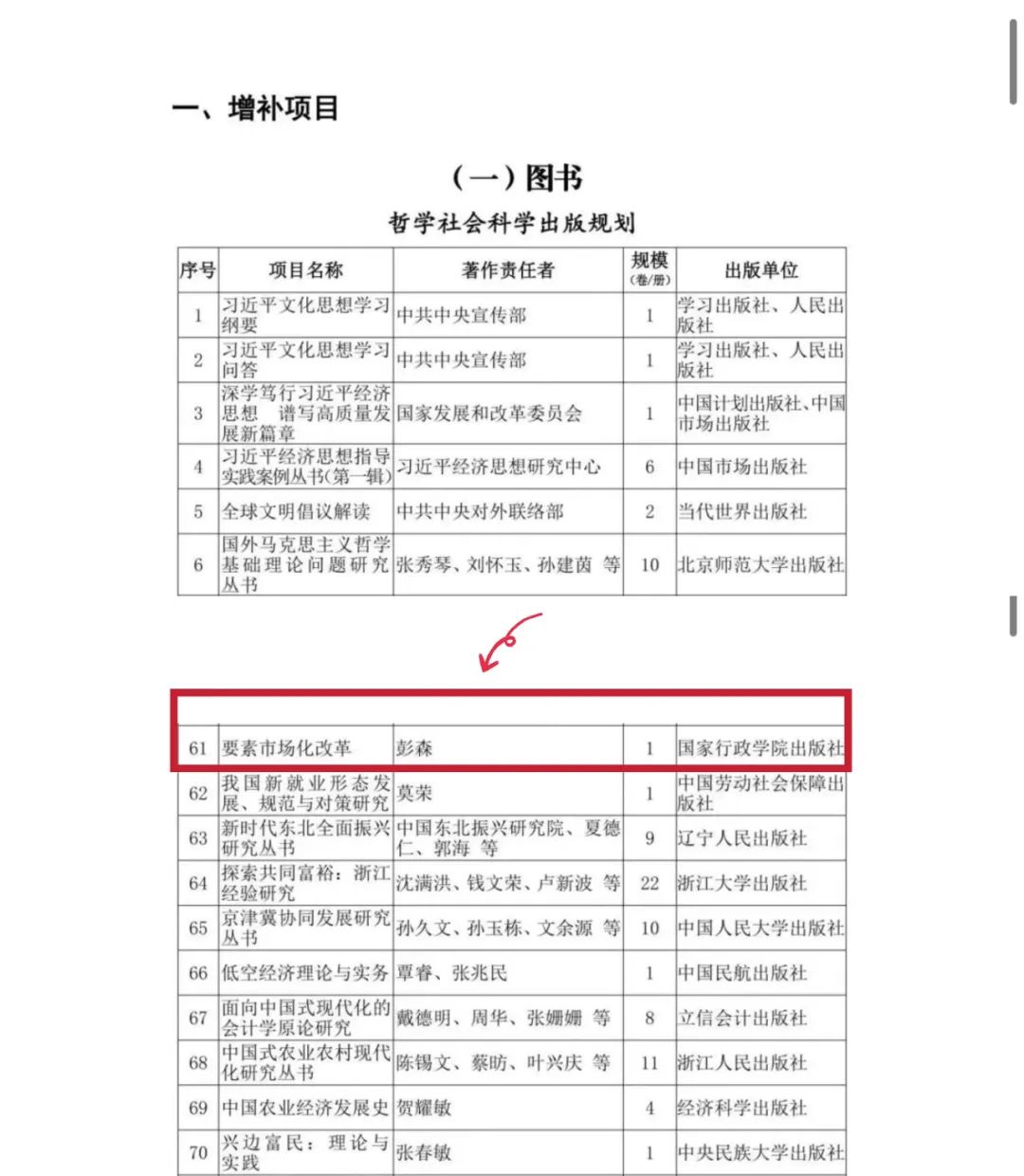 2024年8月29日,國家新聞出版署公布《“十四五”國家重點出版物出版規(guī)劃調(diào)整情況》,確定“十四五”國家重點出版物出版規(guī)劃增補項目590個,其中圖書出版項目524個、音像電子出版項目59個、數(shù)字出版項目7個。我會彭森會長主編的《要素市場化改革》入選“哲學(xué)社會科學(xué)出版規(guī)劃”項目。
