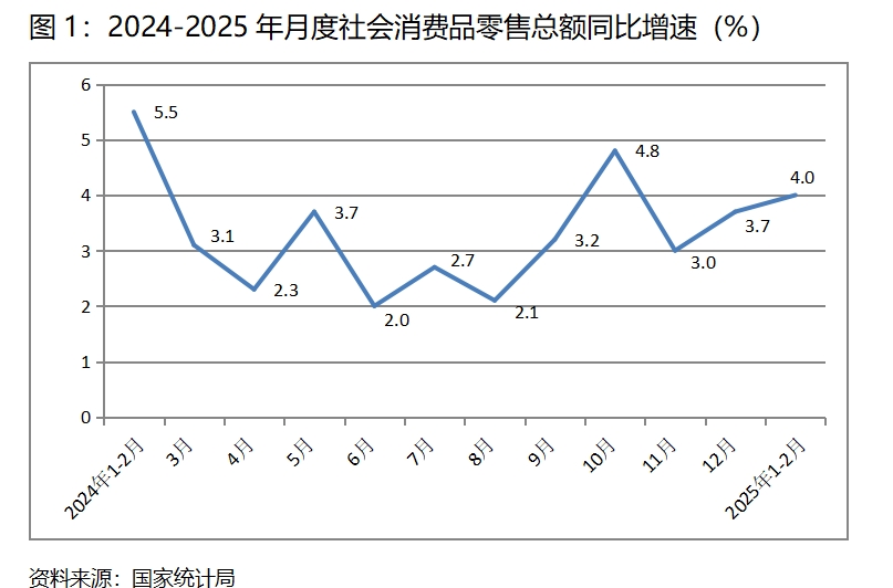 (一)零售增速繼續(xù)回升。1-2月份,社會消費品零售總額同比增長4.0%,比上年12月份增長3.7%回升了0.3個百分點,上年12月份比上年11月份增長3.0%回升了0.7個百分點。數(shù)據(jù)顯示,社會消費品零售總額保持了持續(xù)回升的勢頭,這是上年以來采取的以舊換新等系列促進消費政策措施的結(jié)果,特別需要指出的是,這一增速是在上年同期基數(shù)較高基礎(chǔ)上的回升,更加說明消費增長的動力在增強。