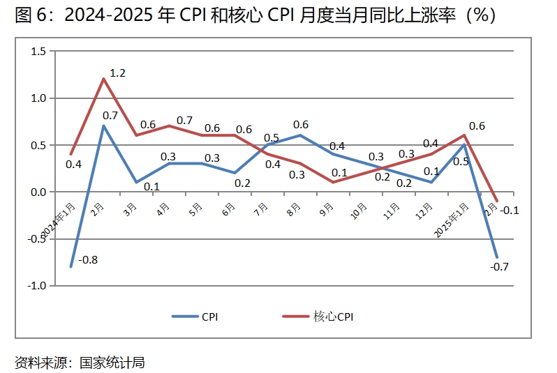 (四)CPI由上漲轉(zhuǎn)為下降。2月份,CPI同比下降0.7%,而1月份上漲了0.5%, CPI出現(xiàn)了由上漲轉(zhuǎn)為下降,有今年春節(jié)與上年春節(jié)錯月因素的影響。其中食品價格下降3.3%,而上月上漲0.4%;非食品價格下降0.1%,而上月上漲0.5%。2月份,核心CPI同比下降0.1%,而1月份上漲0.6%。這其中盡管有春節(jié)錯月因素的影響,但CPI下降特別是核心CPI首次出現(xiàn)的下降,還是說明擴大需求還需要進一步加大力度。