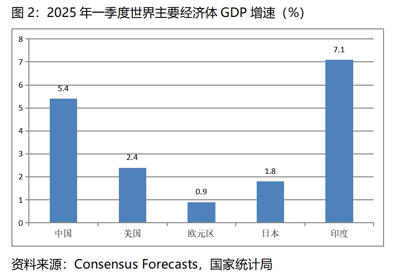 5.4%的經(jīng)濟(jì)增速在世界上是比較快的增速。根據(jù)Consensus Forecasts 最新預(yù)測(cè)數(shù)據(jù),今年一季度美國(guó)GDP同比增長(zhǎng)2.4%,歐元區(qū)增長(zhǎng)0.9%,日本增長(zhǎng)1.8%,印度增長(zhǎng)7.1%,我國(guó)仍然是世界主要經(jīng)濟(jì)體中經(jīng)濟(jì)增長(zhǎng)比較快的國(guó)家。