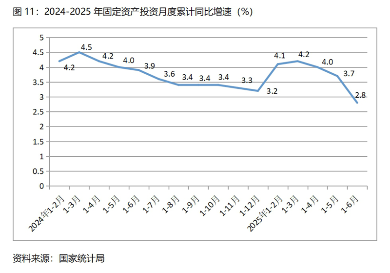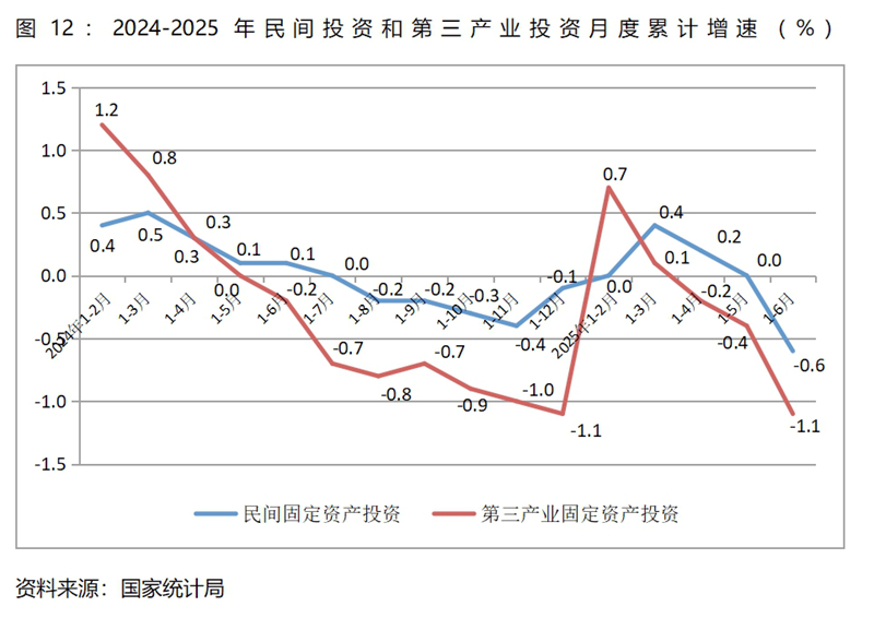 (二)民間投資和第三產(chǎn)業(yè)投資增速均由增長轉(zhuǎn)為下降,餐飲收入增速回落較多。上半年民間固定資產(chǎn)投資同比下降0.6%,一季度為增長0.4%,這是自2023年9月以來月度累計(jì)的最大降幅;第三產(chǎn)業(yè)固定資產(chǎn)投資同比下降1.1%,一季度為增長0.1%,這是今年以來月度累計(jì)的最大降幅;餐飲收入同比增長4.3%,比一季度增長4.7%回落了0.4個百分點(diǎn),比上年同期增長7.9%回落3.6個百分點(diǎn)。這些指標(biāo)增速的變化需引起宏觀調(diào)控政策的高度關(guān)注。