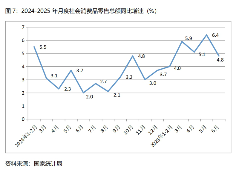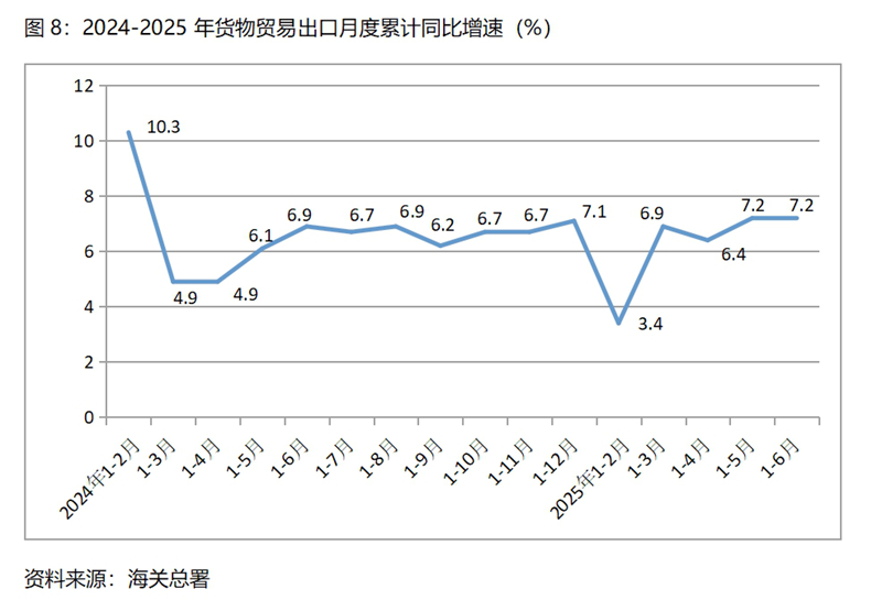下半年GDP保持4.8%以上的增速,有政策實(shí)施、有趨勢慣性以及上年穩(wěn)定基數(shù)等因素的支撐。上半年積極的財(cái)政政策通過擴(kuò)大支出、適度寬松貨幣政策通過降準(zhǔn)降息、擴(kuò)大內(nèi)需通過設(shè)備更新和以舊換新等政策措施,在下半年將會繼續(xù)發(fā)揮作用,加之下半年積極財(cái)政政策和適度寬松貨幣政策的繼續(xù)實(shí)施,“兩重”、“兩新”政策等一系列政策措施的落實(shí),對下半年經(jīng)濟(jì)增長形成了有力支持。上半年GDP的較快增長,對下半年GDP增長發(fā)揮著慣性的作用,加之下半年GDP增長基數(shù)與上半年基數(shù)均是5.0%,穩(wěn)定的基數(shù)有利于下半年GDP增長4.8%以上。