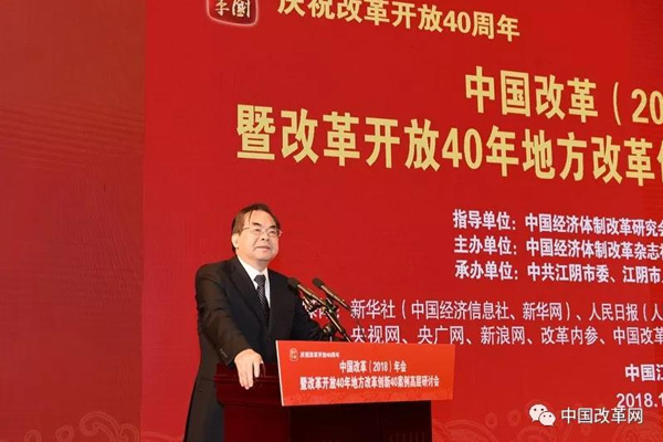 2018年12月27日,由中國(guó)經(jīng)濟(jì)體制改革研究會(huì)、中國(guó)經(jīng)濟(jì)改革研究基金會(huì)指導(dǎo),中國(guó)經(jīng)濟(jì)體制改革雜志社主辦,中共江陰市委、江陰市人民政府承辦的“慶祝改革開(kāi)放40周年——中國(guó)改革(2018)年會(huì)暨改革開(kāi)放40年地方改革創(chuàng)新40案例高層研討會(huì)”在江蘇省江陰市召開(kāi)。